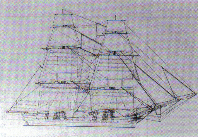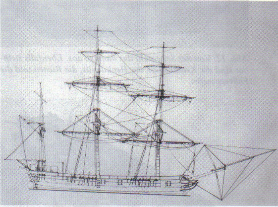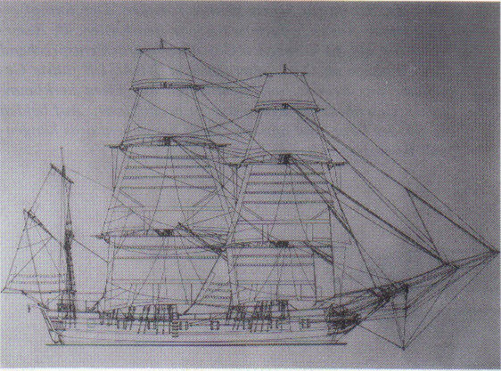Abb. 5: H.M.S. BEAGLE, das stehende Gut der Masten (Barktakelung) damit nicht nur die vielen verbliebenen Lücken in der Karte des Landes, sie gehörten auch zu denen, die als frühe Pioniere das uns so geläufige Weltbild schufen.